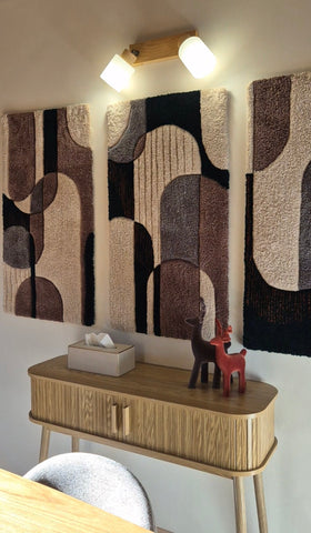 Découvrez l'univers de Maison Laëne à travers notre galerie de créations uniques en laine réalisées avec passion dans notre atelier.